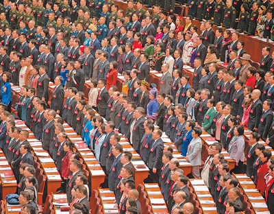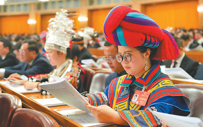 3月5日,十四屆全國人大二次會議在北京人民大會堂開幕,代表認真審議政府工作報告。本報記者 陳斌 攝