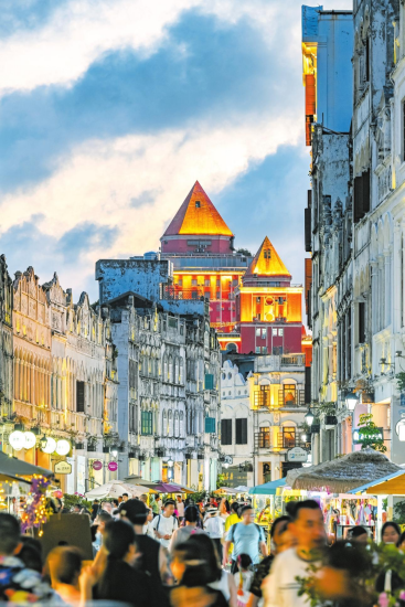 喝一盞小茶、抿一口咖啡,沉浸式聽一曲瓊??;看黎族雙面繡、糖畫制作、椰雕;欣賞洋溢著藝術與青春氣息的街頭藝術演出……傳統(tǒng)與現(xiàn)代相互映襯,讓騎樓老街煥發(fā)時尚新活力。(記者 祝勇)