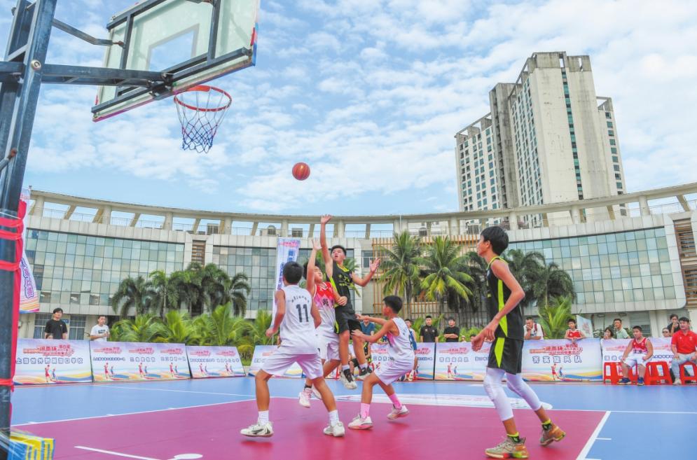 2023年10月29日,第四屆“椰青杯”青少年籃球比賽現(xiàn)場,參賽小隊(duì)員正在激烈地進(jìn)行比賽對抗。