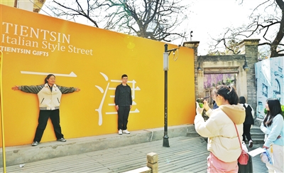 河北區(qū)意式風(fēng)情區(qū)打造沉浸式場(chǎng)景,游客在City Walk中定格美好。 記者 吳迪 攝