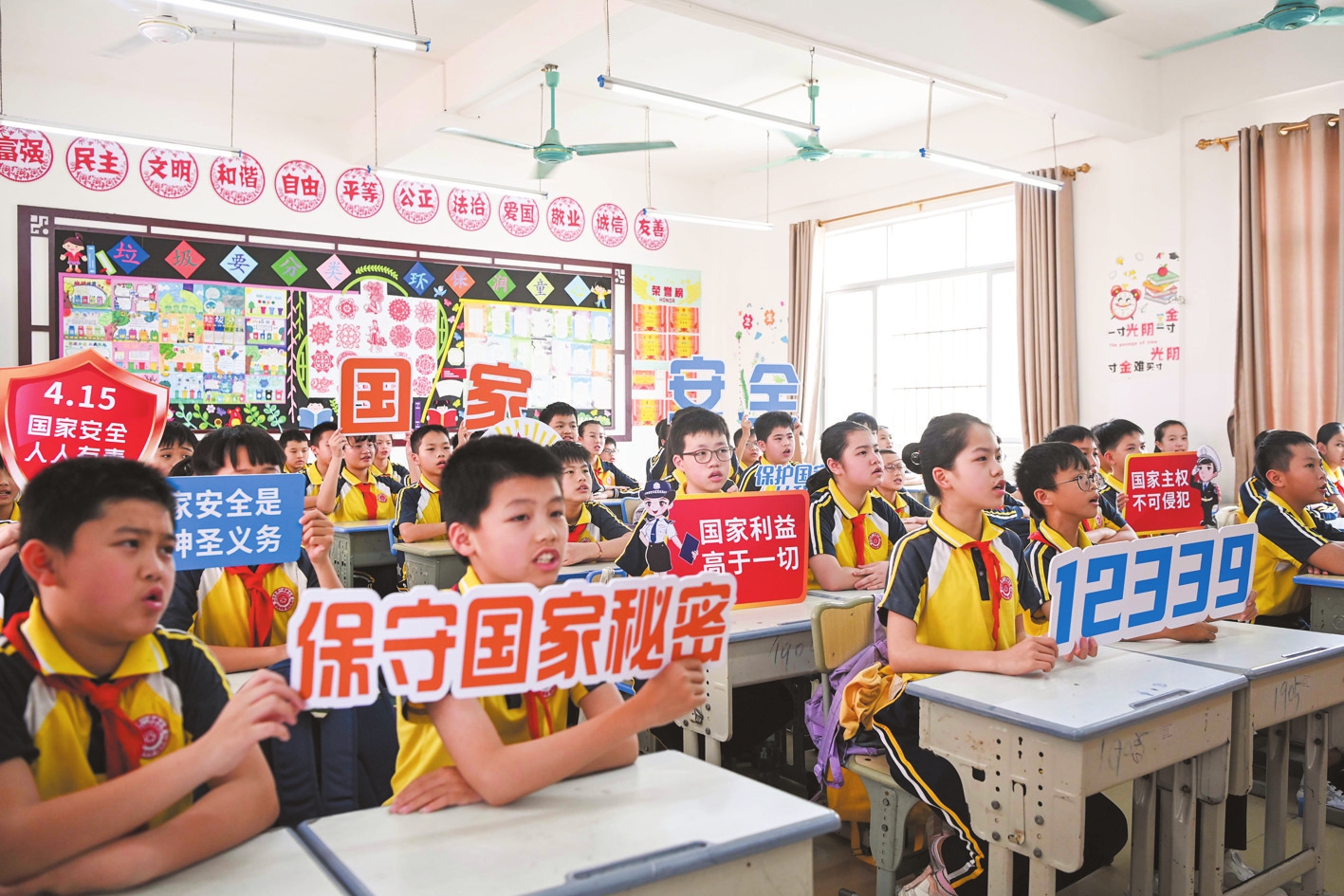 4月15日,在廣西興業(yè)縣一所小學(xué)內(nèi),學(xué)生們在課堂上學(xué)習(xí)國家安全相關(guān)的知識。記者 曹祎銘 攝