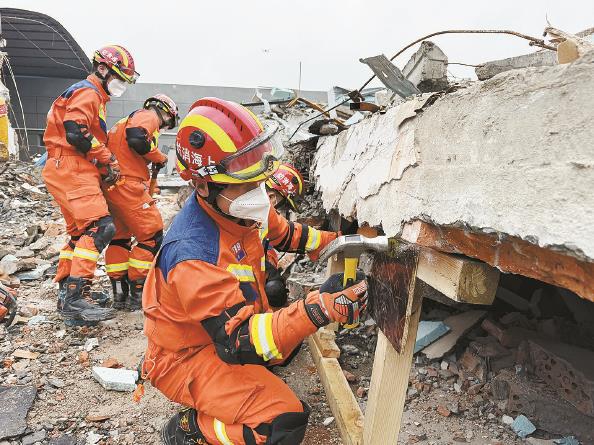 演練中,消防人員在震后廢墟上實(shí)施破拆救援 記者 曹博文 攝