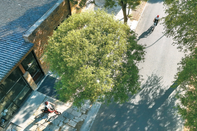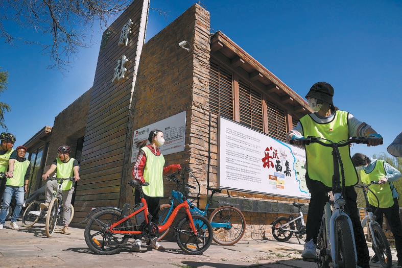 騎行活動(dòng)集合始發(fā)的騎行驛站,距離運(yùn)河不到500米,是由過(guò)去廢棄的公共衛(wèi)生間改造而成,呈現(xiàn)出質(zhì)樸大氣的工業(yè)風(fēng)格,令人眼前一亮。驛站內(nèi),游客不僅可以享受熱水、咖啡、簡(jiǎn)餐、手機(jī)充電、騎行設(shè)備維修等服務(wù),還可通過(guò)圖文展板、實(shí)物展陳、多媒體影像等方式,了解西集鎮(zhèn)深厚的文化底蘊(yùn)和特色產(chǎn)業(yè)?!拔覀儑@‘健康+旅游’打造了兩條生態(tài)騎行線路,自3月中旬以來(lái),每周都組織騎行活動(dòng),帶領(lǐng)游客打卡精品民宿和特色村莊,到種植園采摘農(nóng)產(chǎn)品,活動(dòng)收獲了大家的一致好評(píng)?!斌A站運(yùn)營(yíng)方相關(guān)負(fù)責(zé)人李龍海說(shuō)。