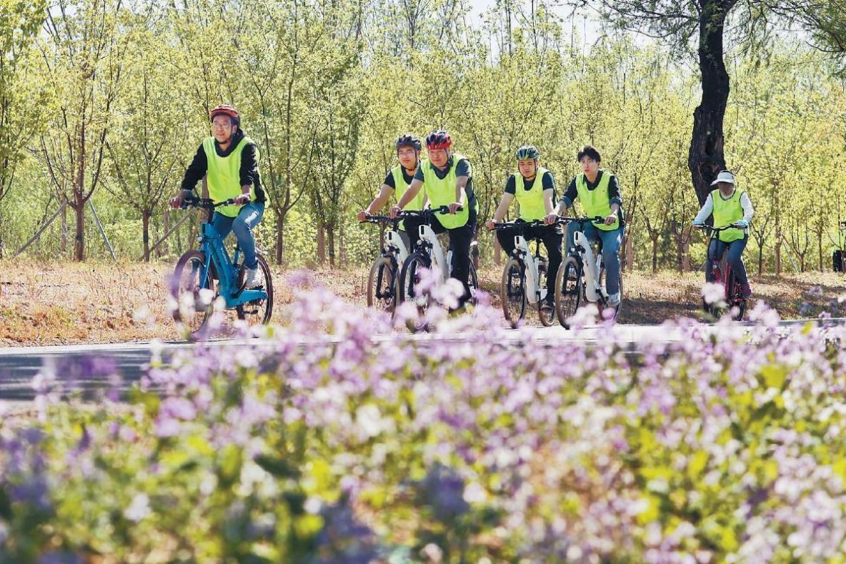 “這是一次令人身心愉悅的騎行活動(dòng),運(yùn)河邊的環(huán)境非常好,全新的綠道平坦舒適,兩岸花團(tuán)錦簇,特別是周邊村莊有成片的櫻桃園,滿樹的櫻桃花如雪似霜,穿越其中感覺(jué)美極了,我和朋友們都拍了不少照片。”騎行愛(ài)好者王女士說(shuō)。