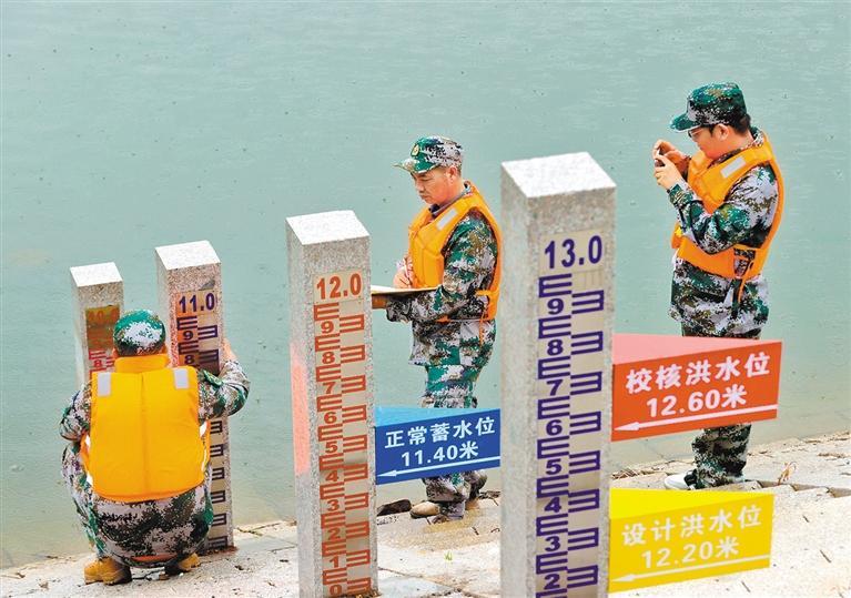 6月19日,在浙江省德清縣楊墳塢水庫水位標尺處,工作人員在開展防汛安全隱患排查。謝尚國 攝(中經(jīng)視覺)