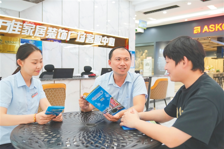 “廣場(chǎng)內(nèi)入駐有近200家商戶,自2022年底成為放心消費(fèi)商圈以來,我們便聯(lián)合商家通過實(shí)行承諾7天無理由退換貨、先行賠付機(jī)制等舉措,不斷優(yōu)化消費(fèi)環(huán)境?!焙D先f佳家居裝飾廣場(chǎng)副總經(jīng)理吳雄介紹。