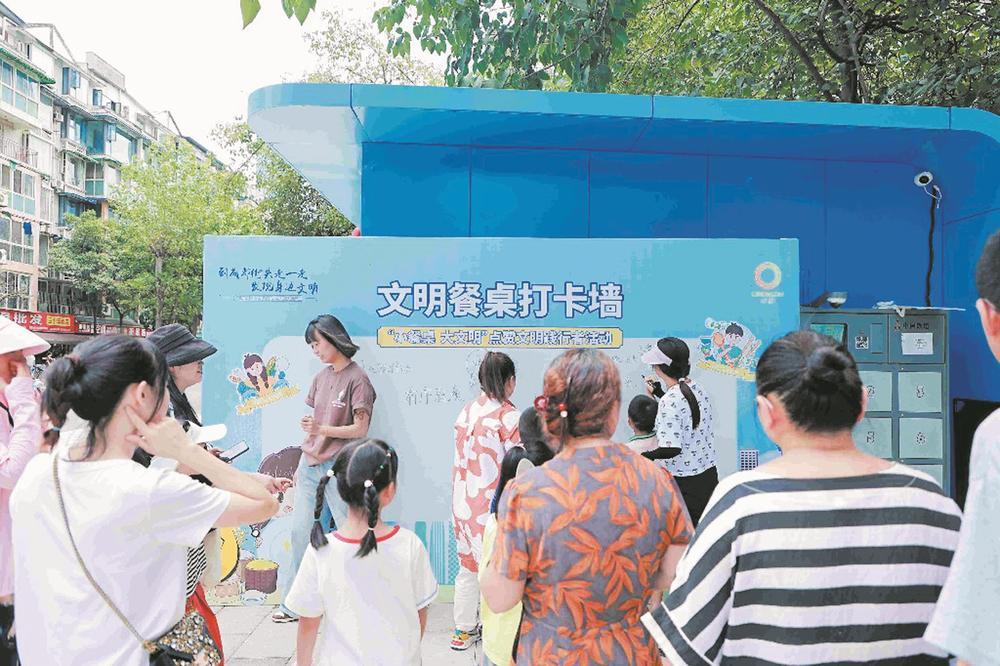 7月11日,“到成都街頭走一走·發(fā)現(xiàn)身邊文明”點贊文明踐行者系列活動,圍繞文明餐桌主題,同步走進成都潤邦國際酒店、九眼橋社區(qū)新華社新時代文明實踐站、高新區(qū)合生廣場,以糧食安全與文明餐桌知識問答、互動體驗等方式開展了“文明餐桌 以儉養(yǎng)德”“小餐桌 大文明”“文明用餐 杜絕浪費”等活動,大朋友小朋友們都踴躍參與到活動中來。