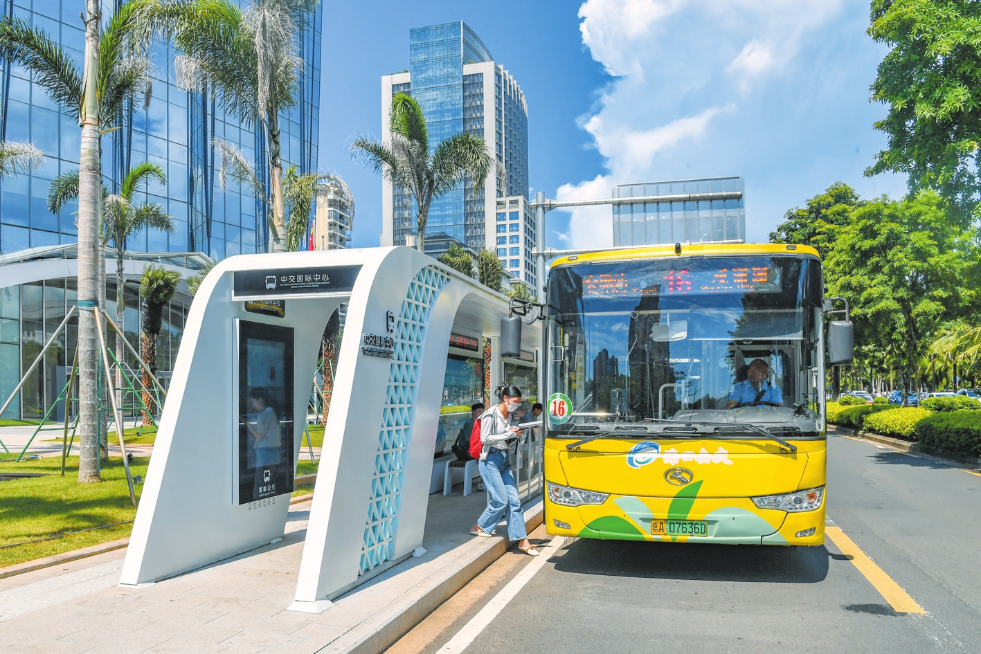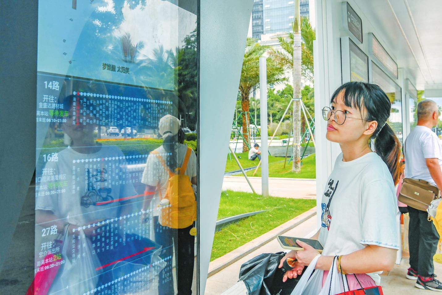 日前,海口首座智能一體化公交站臺(tái)在中交國(guó)際中心公交站全新亮相。在這座外形酷似公交車(chē)的站臺(tái)里,電子站牌能顯示途經(jīng)該站所有線(xiàn)路車(chē)輛的當(dāng)前位置,有效解決老年人、中小學(xué)生不便使用手機(jī)App查詢(xún)車(chē)輛到站信息的問(wèn)題;候車(chē)椅旁邊配有多個(gè)USB充電口,以及手機(jī)無(wú)線(xiàn)充電功能,細(xì)微之處提升著市民游客的出行體驗(yàn)。