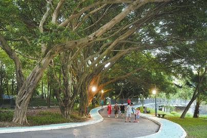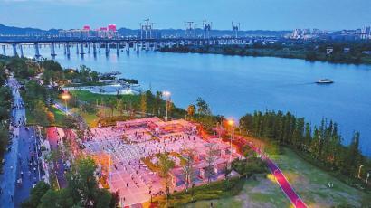 6月17日晚,市民在遂寧市九蓮洲生態(tài)濕地公園內(nèi)運動、健身。