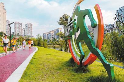 8月18日,市民在成都市麗都運動公園健身步道健身。