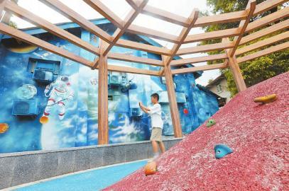 8月22日,資陽市安岳縣時代廣場濱河路的秦九韶“口袋公園”成為孩子們游戲的樂園。