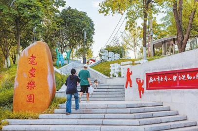 8月26日,市民在廣安市老年人體育運動公園漫步休閑。