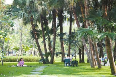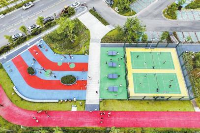 籃球場上、乒乓球桌旁,不少市民揮汗如雨;小廣場上,潮媽潮姐們正跟著節(jié)奏跳廣場舞;高大的棕櫚樹下,市民坐在草地上納涼……8月18日傍晚,成都市區(qū)退去了白天的暑熱,記者走進(jìn)成都市武侯區(qū)麗都運動公園,看到不少市民正在公園里游玩、健身。這是成都最新打造的“口袋公園”。推窗見綠、出門見景、鳥語花香——這樣的場景在我們身邊隨處可見,大家在觸手可及的“口袋公園”里游玩、健身,享受家門口的“小確幸”。