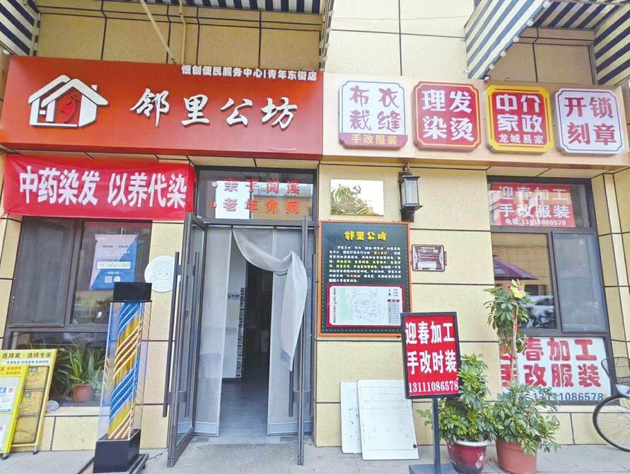 “有‘鄰里公坊’太方便了。以前理發(fā)得走好一陣,現(xiàn)在下樓就解決了?!闭诶戆l(fā)的王守元說,“別看這兒不大,不僅能理發(fā),還有改衣服、家政、配鑰匙、修家電等多種服務,滿足日常生活需求足夠了?!?/p>