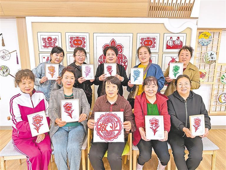 剪紙手藝人在“近鄰”黨群服務(wù)驛站展示剪紙作品。