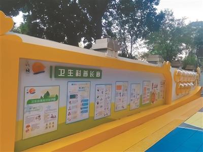 其中,新隆沙社區(qū)長(zhǎng)者和兒童居民較多,社區(qū)內(nèi)開放式小廣場(chǎng)常有居民帶小朋友散步玩樂。在本輪改造中,新隆沙社區(qū)特別加入“健康社區(qū)”和“友好兒童”主題。社區(qū)利用轄內(nèi)小廣場(chǎng)側(cè)邊的公用圍墻,打造成健康知識(shí)科普長(zhǎng)廊,以期刊的形式定期更新,內(nèi)容涵蓋公共衛(wèi)生、心理健康、應(yīng)急救助、法律法規(guī)等方面,擴(kuò)大宣傳普及面。一方面合理運(yùn)用原閑置空間開展科普宣傳,另一方面實(shí)現(xiàn)了社區(qū)容貌提升。(李元源)