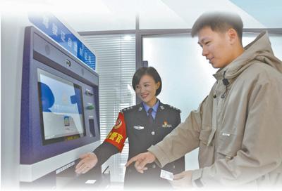 在天津市公安局南開分局向陽路派出所,民警幫助群眾通過駕駛證自助制證機(jī)辦理相關(guān)業(yè)務(wù)。