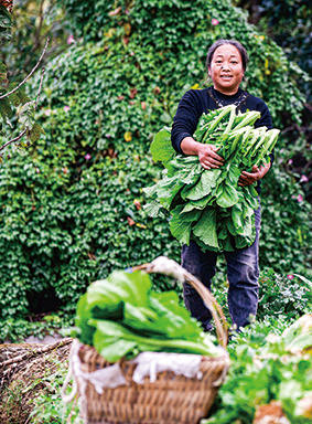 貴陽市烏當區(qū)下壩鎮(zhèn)下壩村的村民在地里摘菜,準備第二天進城售賣(11月6日攝)。