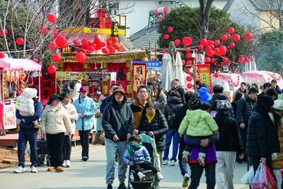 有人選擇去夫子廟、中山陵、玄武湖、紅山森林動(dòng)物園等地感受人山人海的熱鬧氣氛,也有人選擇去鄉(xiāng)村近郊的農(nóng)家庭院里品年味。五湖四海的游客也競(jìng)相“來(lái)南京過(guò)大年”,春節(jié)的氛圍感拉滿。