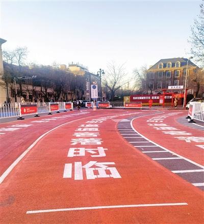“年輕人偏愛網(wǎng)約車,又是出游的主要群體。以前每逢節(jié)假日,總會出現(xiàn)車輛擁堵、秩序混亂的場景,尤其是交通管制時,河北路與成都道交口處常常因為營運車的隨意??慷萑氚c瘓。我們多次調(diào)研,研究出設(shè)置臨時落客區(qū)的舉措?!敝ш犡撠熑私榻B,該區(qū)域共設(shè)置了3條臨時落客通道,地面刷著紅漆,印有“臨時落客通道,即停即走”的字樣,車道用白色圍欄隔開,車輛互不影響,圍欄上也掛有提示牌“車道擁堵,請司機師傅勿在此長時間停留”,路邊立有一個崗?fù)?,這是游客上下車等待區(qū)域。
