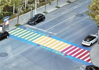 兒童對色彩比較敏感,喜歡五顏六色的世界。在和平區(qū)南市大街附近,幾個路口的斑馬線不再是單調(diào)的白色,而是五顏六色。這些斑馬線的設(shè)置專為吸引兒童的注意,讓他們養(yǎng)成“行人過馬路必須走斑馬線”的好習慣。