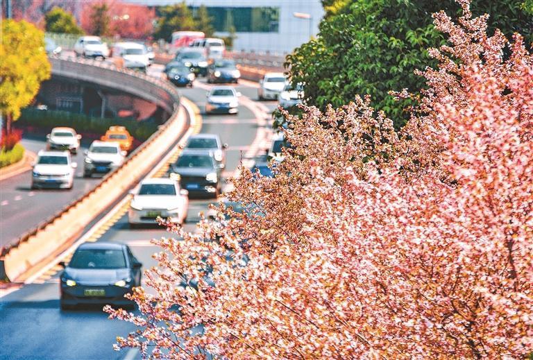 南二環(huán)沿線,嬌艷的紅梅率先點(diǎn)亮了春天的色彩。玫紅色的花瓣在陽光的照耀下鮮艷奪目,與周邊嫩綠初現(xiàn)的綠植相互映襯,形成了一幅生機(jī)勃勃的畫面。
