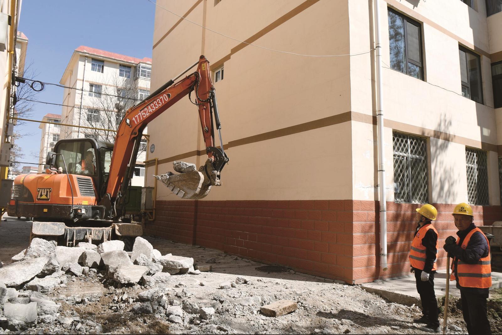 近日,在興慶區(qū)康樂(lè)苑小區(qū),施工人員正在對(duì)老舊地面進(jìn)行拆除。