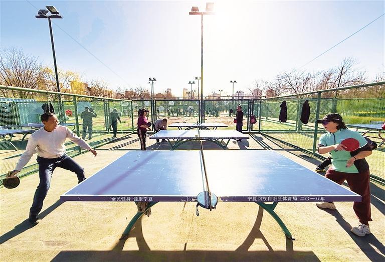 4月5日,市民在銀川毓秀公園打乒乓球。當(dāng)日,該公園迎來許多晨練市民,運動的人們成為假日清晨的亮麗風(fēng)景。記者 馬楠 攝