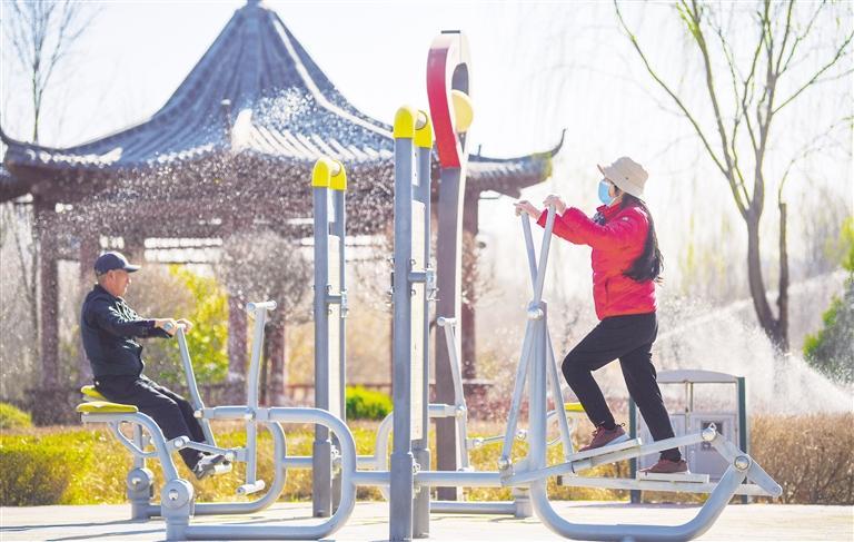 健身器材練起來。 記者 馬楠 攝