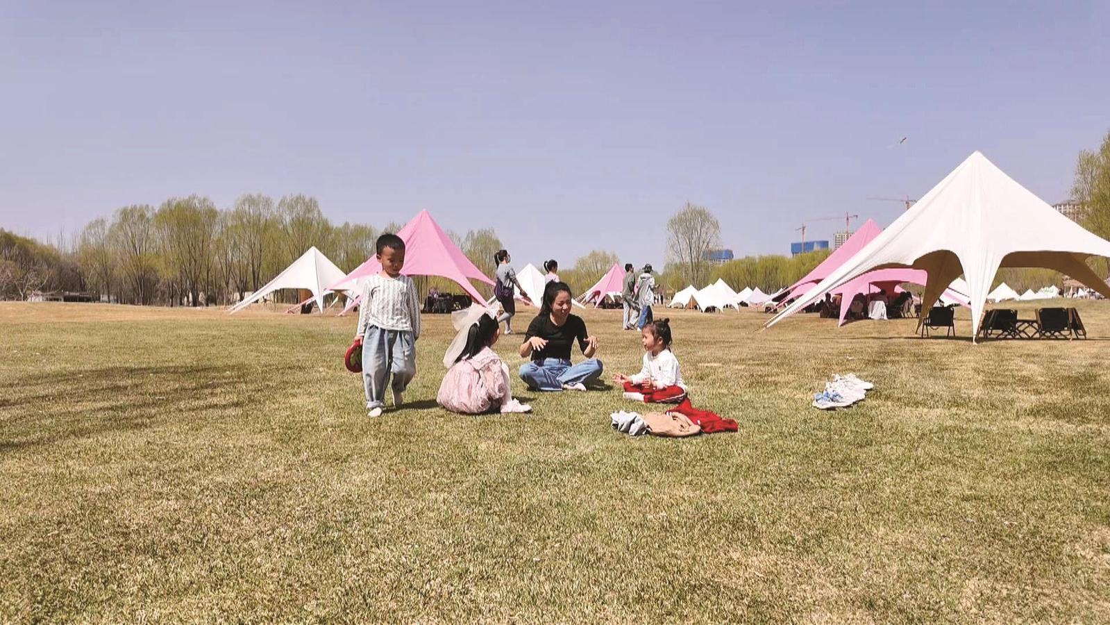 戶外露營,享受親子時(shí)光(4月6日攝)。 記者 張韶奇 王浩南 攝