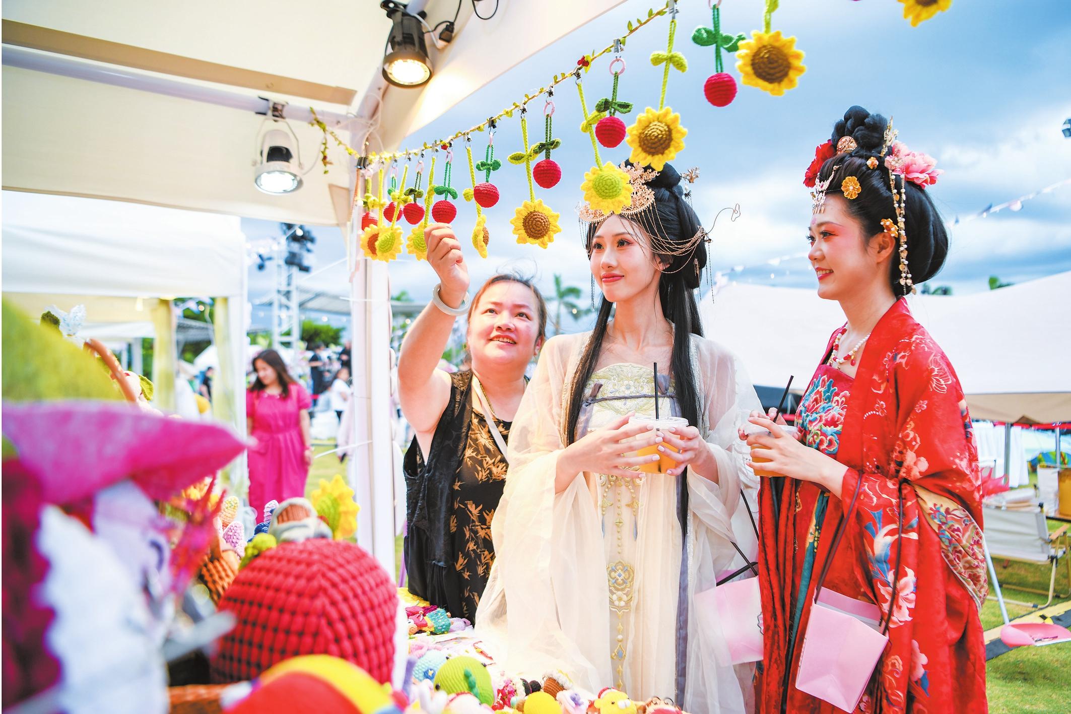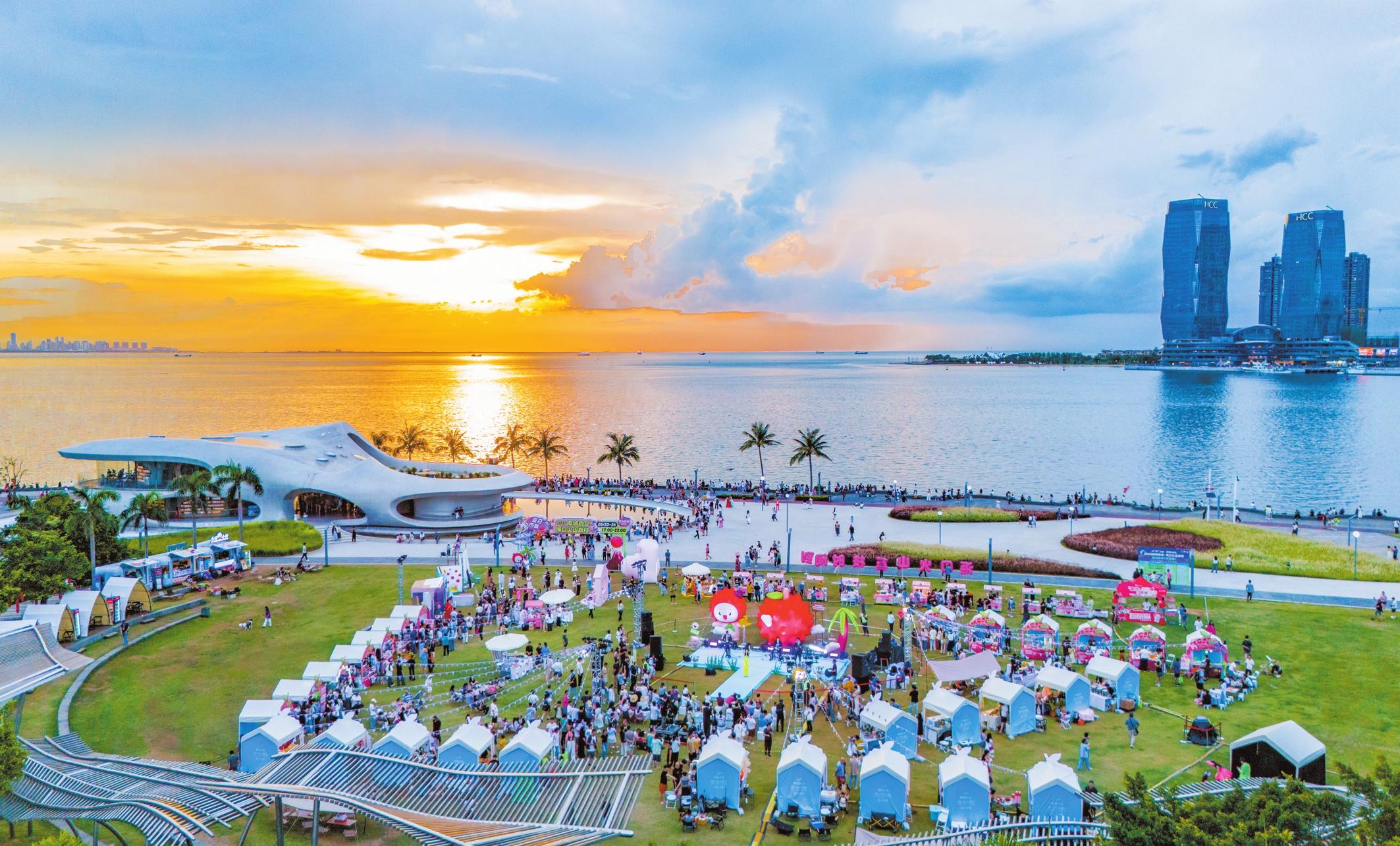 文化浸潤,以精神豐盈塑造城市品格。華燈初上,世紀(jì)海角文化商業(yè)街區(qū)的霓虹與晚霞交相輝映。手工藝人展示黎錦編織技藝,街頭樂隊(duì)奏響海南民歌,游客舉著“老爸茶”奶茶打卡拍照——這條2023年開業(yè)的特色街區(qū),已成為??谝菇?jīng)濟(jì)的“流量擔(dān)當(dāng)”。