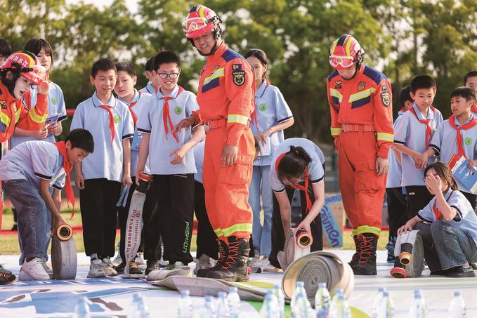 近日,鹽城市鹽都區(qū)消防救援大隊開展消防宣傳進校園活動?;顒蝇F(xiàn)場內(nèi)容豐富、形式多樣,為北龍港小學(xué)廣大師生和家長帶來了一場別開生面且具有教育意義的消防安全知識盛宴。 王小康 攝