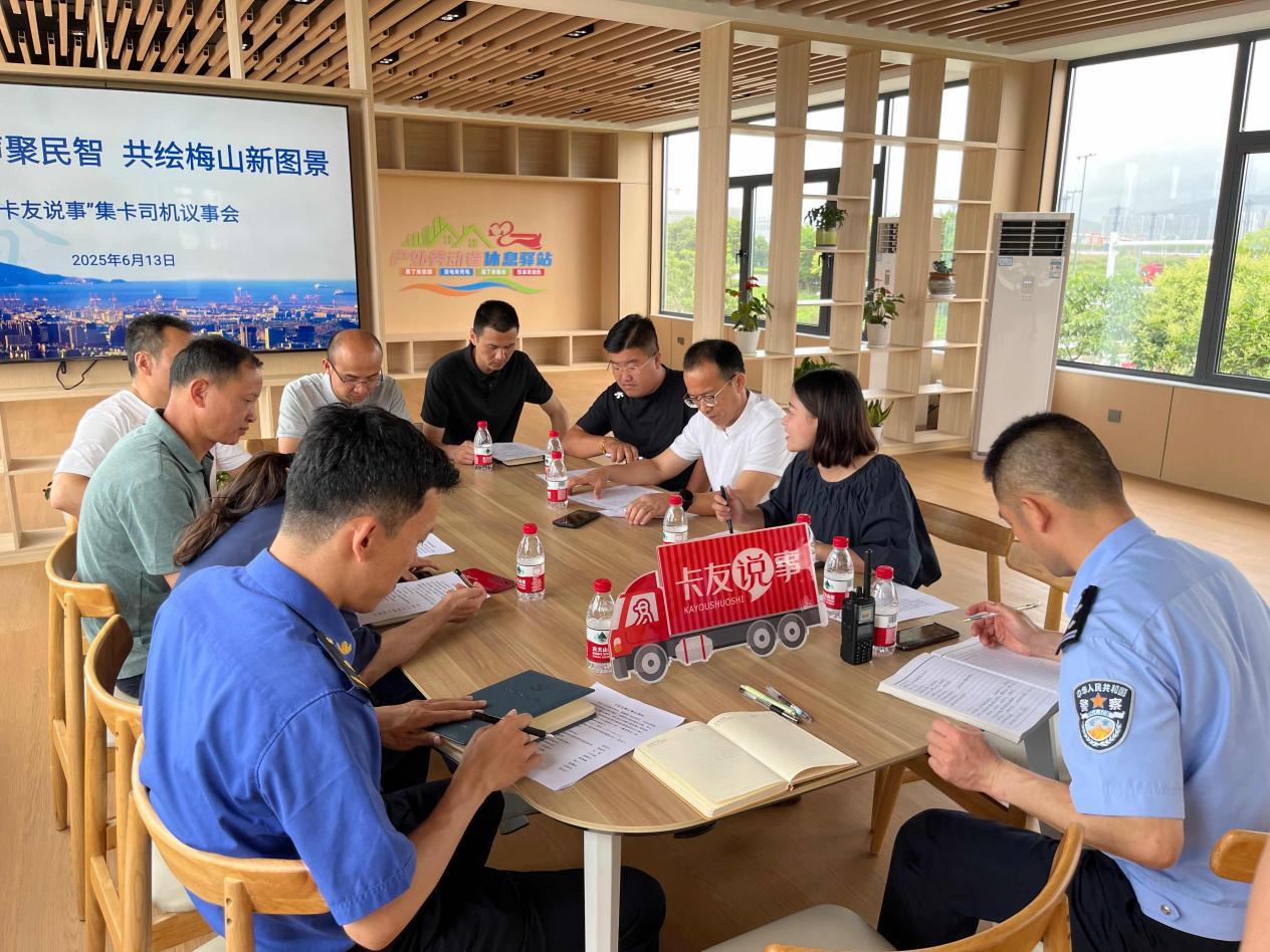 隨著浙江省寧波市舟山港六橫公路大橋一期通車,梅山保稅區(qū)集卡服務(wù)中心臨時(shí)停車場(chǎng)也隨之投入試運(yùn)行。6月13日上午,一場(chǎng)熱鬧的集卡司機(jī)議事會(huì)在梅山金創(chuàng)社區(qū)召開,公安、綜合行政執(zhí)法等部門與社區(qū)合力搭建溝通平臺(tái),傾聽集卡司機(jī)心聲,匯聚多方智慧,解決集卡司機(jī)難題。