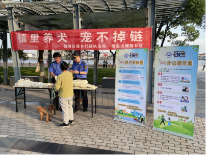 為紀(jì)念《寧波市養(yǎng)犬管理?xiàng)l例》頒布5周年,進(jìn)一步提升市民文明養(yǎng)犬意識(shí),構(gòu)建和諧養(yǎng)犬環(huán)境,6月 17日傍晚,浙江省寧波市鎮(zhèn)海區(qū)綜合執(zhí)法局聯(lián)合招寶山街道順隆社區(qū),在沿江公園開(kāi)展了一場(chǎng)主題為“鎮(zhèn)里養(yǎng)犬、寵不掉鏈”的宣傳活動(dòng)。