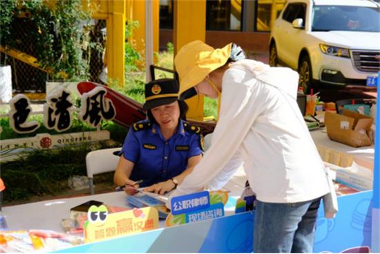 在游戲區(qū)旁,公職律師“駐攤問診”服務(wù)同步進(jìn)行。公職律師團(tuán)隊(duì)化身“法律顧問”,為市民提供零距離、一對一的法律咨詢,從物業(yè)糾紛調(diào)解到合同條款解析,以專業(yè)視角抽絲剝繭,為群眾排憂解難?!皡⒓訚h堡節(jié)還能解決我的法律困惑,省時(shí)又省心。”前來咨詢的商戶李先生感慨。