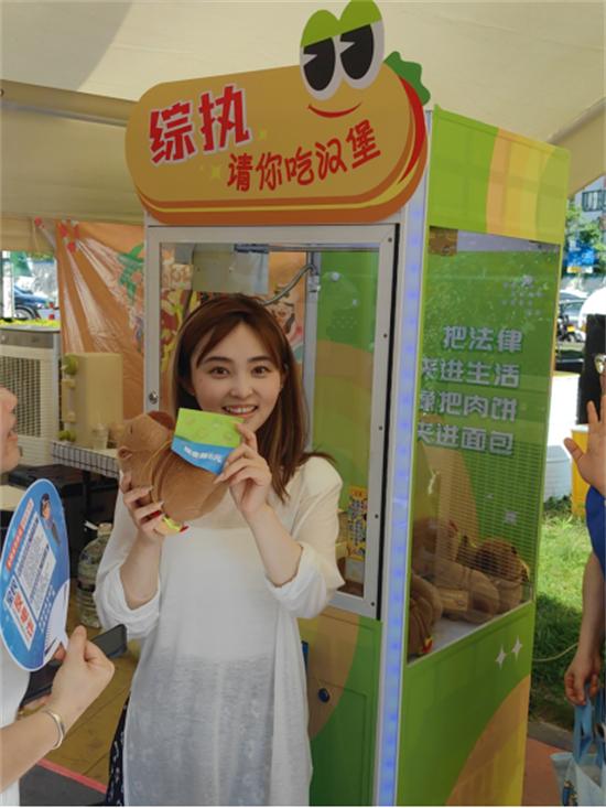 活動(dòng)現(xiàn)場,該局東勝中隊(duì)“綜執(zhí)請你吃漢堡”主題攤位成為人氣焦點(diǎn)。執(zhí)法隊(duì)員以“攤主”身份精心設(shè)計(jì)“知識問答+潮玩互動(dòng)+獎(jiǎng)品兌換”的普法鏈條。參與者通過挑戰(zhàn)法律知識問答,贏取娃娃機(jī)游戲幣來抓取捆綁著漢堡兌換券的幸運(yùn)玩偶,再在漢堡節(jié)上進(jìn)行任意兌換。這種將嚴(yán)肅法律條文轉(zhuǎn)化為趣味挑戰(zhàn)的“游戲化”普法模式,顛覆了傳統(tǒng)的單向宣傳方式,通過互動(dòng)性與獲得感的雙重驅(qū)動(dòng),讓法律知識在歡聲笑語中沁入人心。“沒想到普法還能這么玩!”市民項(xiàng)女士在成功兌換漢堡后笑言,“一邊學(xué)法一邊抓娃娃,最后還能享受美食,這知識‘漲’得也太值了!”