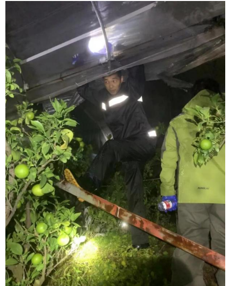 脫下球衣,換上制服,馮建勇的“主戰(zhàn)場”迅速切換至基層治理一線。2022年9月臺風過境期間,象山縣定塘鎮(zhèn)大灣山村一處紅美人養(yǎng)殖大棚上的塑料薄膜被風吹到高壓電輸送線路上,導致石浦部分地區(qū)停電。時任定塘中隊中隊長的馮建勇帶領(lǐng)隊員與民兵、供電所組成搶險隊,在泥濘陡峭的大棚內(nèi)徒手攀上6米高的鋼架。沒有專業(yè)工具,他憑借身高優(yōu)勢固定薄膜,與團隊奮戰(zhàn)數(shù)小時排除5處險情,消除了大面積停電隱患。“當時只想爭分奪秒,群眾安全比什么都重要?!彼潞筝p描淡寫地說。
