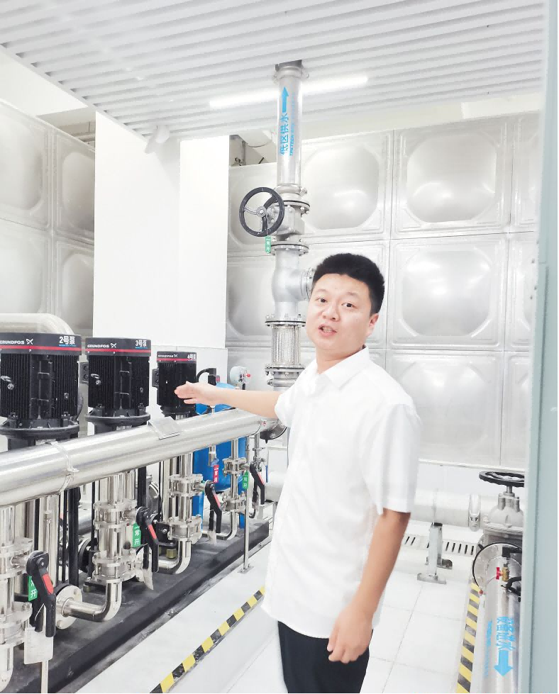 長沙水業(yè)集團(tuán)供水公司工程建設(shè)部工作人員石璧生說,鉑宮小區(qū)水表入戶改造時建設(shè)的供水房設(shè)備更智能。記者 劉軍 攝