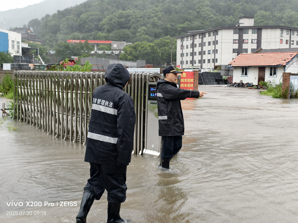 聞“風”而動,全方位啟動應急響應。預警發(fā)布后,各地綜合執(zhí)法隊立即進入應急備戰(zhàn)狀態(tài),以“黨員先鋒崗”為引領,實行24小時應急值守。各地執(zhí)法隊對轄區(qū)內(nèi)一級水庫及易澇區(qū)域開展地毯式巡查,確保水利設施安全無虞;裝填沙袋300余個,在低洼商鋪門前構(gòu)筑防水屏障,有效防止雨水倒灌;處置倒伏樹木、遺失車牌等道路險情20起;加密對易澇點位的巡查頻次,重點保障主次干道、商圈、菜場等人員密集區(qū)域道路暢通。