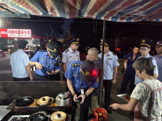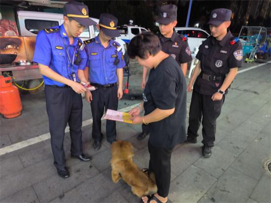 此次專項(xiàng)檢查重點(diǎn)覆蓋轄區(qū)內(nèi)的餐飲店鋪、夜宵城及周邊小區(qū),執(zhí)法人員圍繞商戶燃?xì)饧霸罹叩囊?guī)范使用、餐飲環(huán)境衛(wèi)生、食品安全、消防安全以及居民文明養(yǎng)犬等方面,進(jìn)行了全面細(xì)致的排查。在澥浦夜宵城檢查時(shí),發(fā)現(xiàn)部分商戶存在燃?xì)馄窟^期的現(xiàn)象。對(duì)此,執(zhí)法人員一方面指導(dǎo)商戶整改違規(guī)用氣行為,同步開展燃?xì)獍踩褂眯麄?;另一方面結(jié)合商戶經(jīng)營(yíng)需求,第一時(shí)間聯(lián)系美氣多公司到場(chǎng),協(xié)助商戶現(xiàn)場(chǎng)辦理開戶,并指導(dǎo)其通過官方電話、企業(yè)微信公眾號(hào)等正規(guī)渠道訂氣,從源頭上杜絕“黑氣”流通。這種集安全宣教、整改指導(dǎo)與現(xiàn)場(chǎng)服務(wù)于一體的方式,讓商戶切實(shí)感受到執(zhí)法的溫度,也提升了對(duì)服務(wù)式執(zhí)法的認(rèn)可。同時(shí),執(zhí)法人員對(duì)小區(qū)周邊進(jìn)行犬類集中整治,因夏季遛狗居民較多,執(zhí)法人員提醒養(yǎng)犬居民文明養(yǎng)犬,謹(jǐn)防犬類傷人事件發(fā)生。