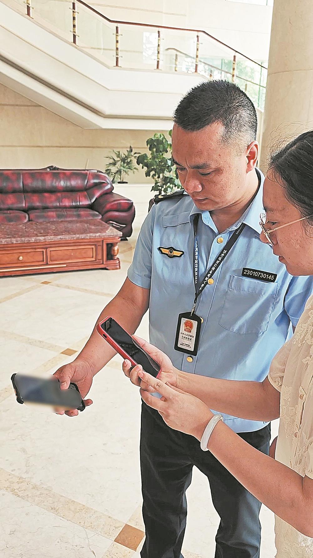 企業(yè)工作人員掃碼查看執(zhí)法人員信息。