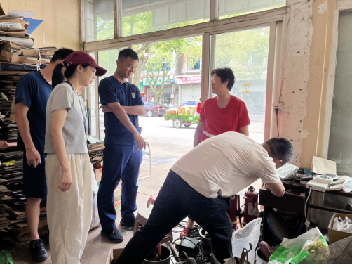 和以往有所不同,此次指導針對廢品回收行業(yè)的經(jīng)營特點,提供了更為精準的風險防范建議。在消防安全領(lǐng)域,重點指明逃生通道指引標志、滅火器配備、用電安全等相關(guān)標準,指導人員不僅排查了線路布局、設備接地等隱患,還特別提醒注意高溫天氣下的防火防爆措施。在綜合執(zhí)法領(lǐng)域,指導團就垃圾回收分類、市容環(huán)境衛(wèi)生等方面提供了預防性指導。指導團現(xiàn)場指出了3大風險問題,列出整改清單,明確整改時限并約定復查時間,確保商戶在開業(yè)前規(guī)避潛在風險。