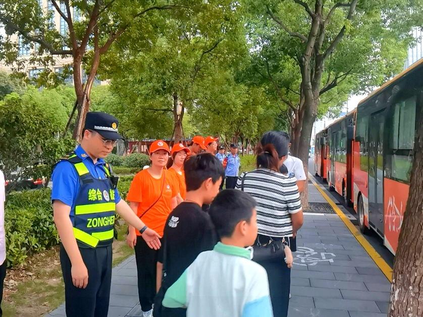 除了主賽場,分布在全城的多個(gè)轉(zhuǎn)播點(diǎn)同樣熱鬧。鳳山街道公共文化中心、陽明古鎮(zhèn)百姓大舞臺、蛇山公園……這些人氣聚集地,都能看到執(zhí)法隊(duì)隊(duì)員忙碌的身影。他們巡查周邊道路,勸離違規(guī)停車,規(guī)范共享單車停放,耐心為群眾指路,既保證了環(huán)境整潔,也提升了觀賽體驗(yàn)。