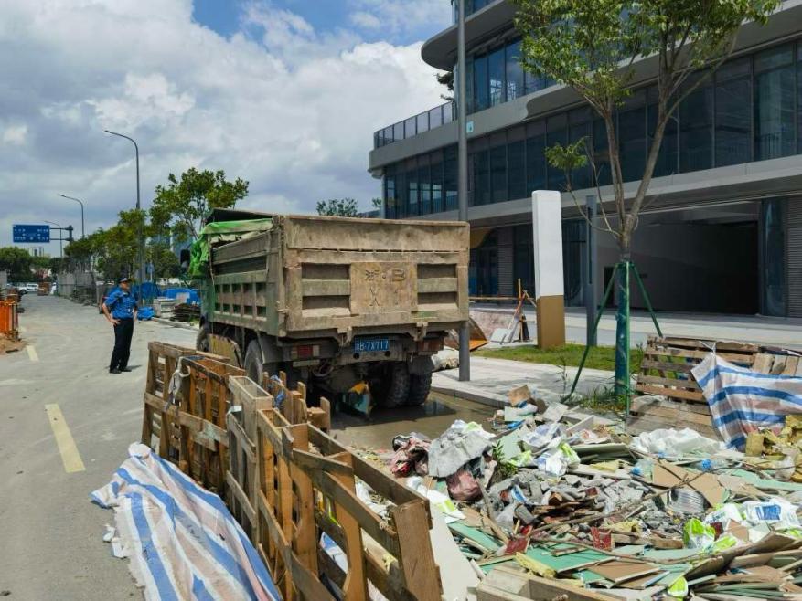 針對(duì)違規(guī)處置建筑垃圾行為,執(zhí)法人員開(kāi)展定期巡查,強(qiáng)化運(yùn)輸監(jiān)管。7月,執(zhí)法人員巡查至鐵建·明賢府城市會(huì)客廳南側(cè)時(shí),發(fā)現(xiàn)一輛貨車(chē)正裝載著建筑垃圾行駛在道路上。因該型號(hào)貨車(chē)并不具備運(yùn)輸建筑垃圾的資格,執(zhí)法人員立即上前制止并引導(dǎo)司機(jī)至路邊詢(xún)問(wèn)。經(jīng)詢(xún)問(wèn),貨車(chē)司機(jī)劉某某涉嫌個(gè)人違法從事建筑垃圾運(yùn)輸,該行為違反了《寧波市建筑垃圾管理?xiàng)l例》。
