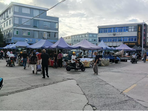 9月3日凌晨3點的浙江省象山縣定塘鎮(zhèn),中心菜場西側的路燈在薄霧中暈開暖黃的光。每個月9次,雷打不動的農貿集市在此準時開張。蔬菜區(qū)的塑料筐碰撞聲、水產區(qū)的氧氣泵嗡鳴聲、服裝區(qū)的金屬清脆摩擦聲,共同編織成小鎮(zhèn)的晨光序曲。