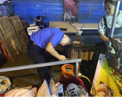 執(zhí)法人員來(lái)到港道路、中官路等夜市集中經(jīng)營(yíng)點(diǎn),建立“一攤一檔”安全臺(tái)賬,對(duì)使用燃?xì)獾纳虘暨M(jìn)行全覆蓋檢查。過(guò)程中,執(zhí)法人員重點(diǎn)對(duì)夜市區(qū)域內(nèi)液化氣瓶是否具有年檢標(biāo)識(shí)、液壓閥的老舊程度、輸氣膠管的老化程度、滅火器是否合理配備和擺放等情況進(jìn)行詳細(xì)檢查。