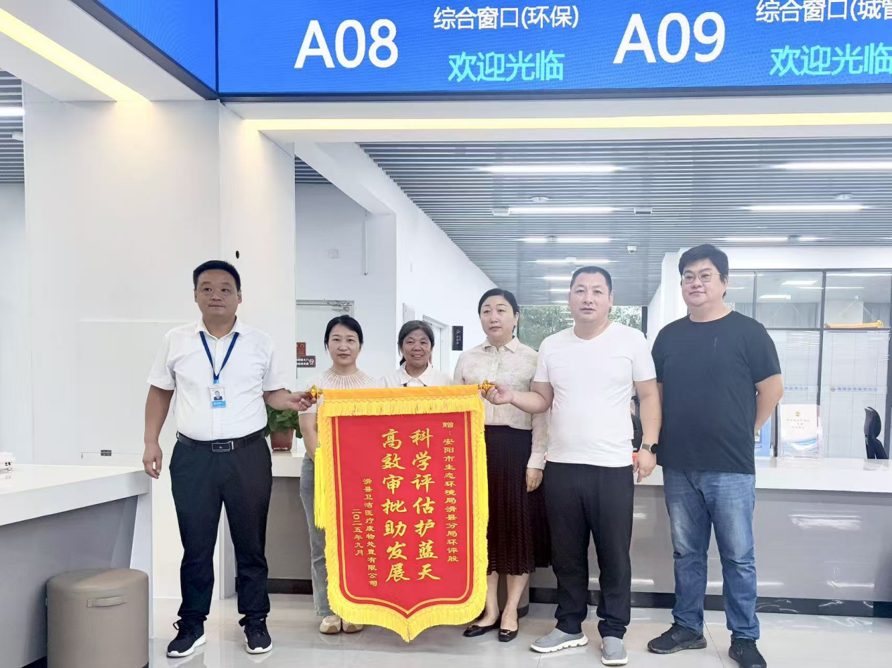 近日,河南省滑縣衛(wèi)潔醫(yī)療廢物處置有限公司負(fù)責(zé)人將一面印有“高效審批助發(fā)展 科學(xué)評估護(hù)藍(lán)天”的錦旗送到安陽市生態(tài)環(huán)境局滑縣分局工作人員手中,以此表達(dá)對滑縣分局在環(huán)評手續(xù)辦理過程中提供優(yōu)質(zhì)服務(wù)的衷心感謝。