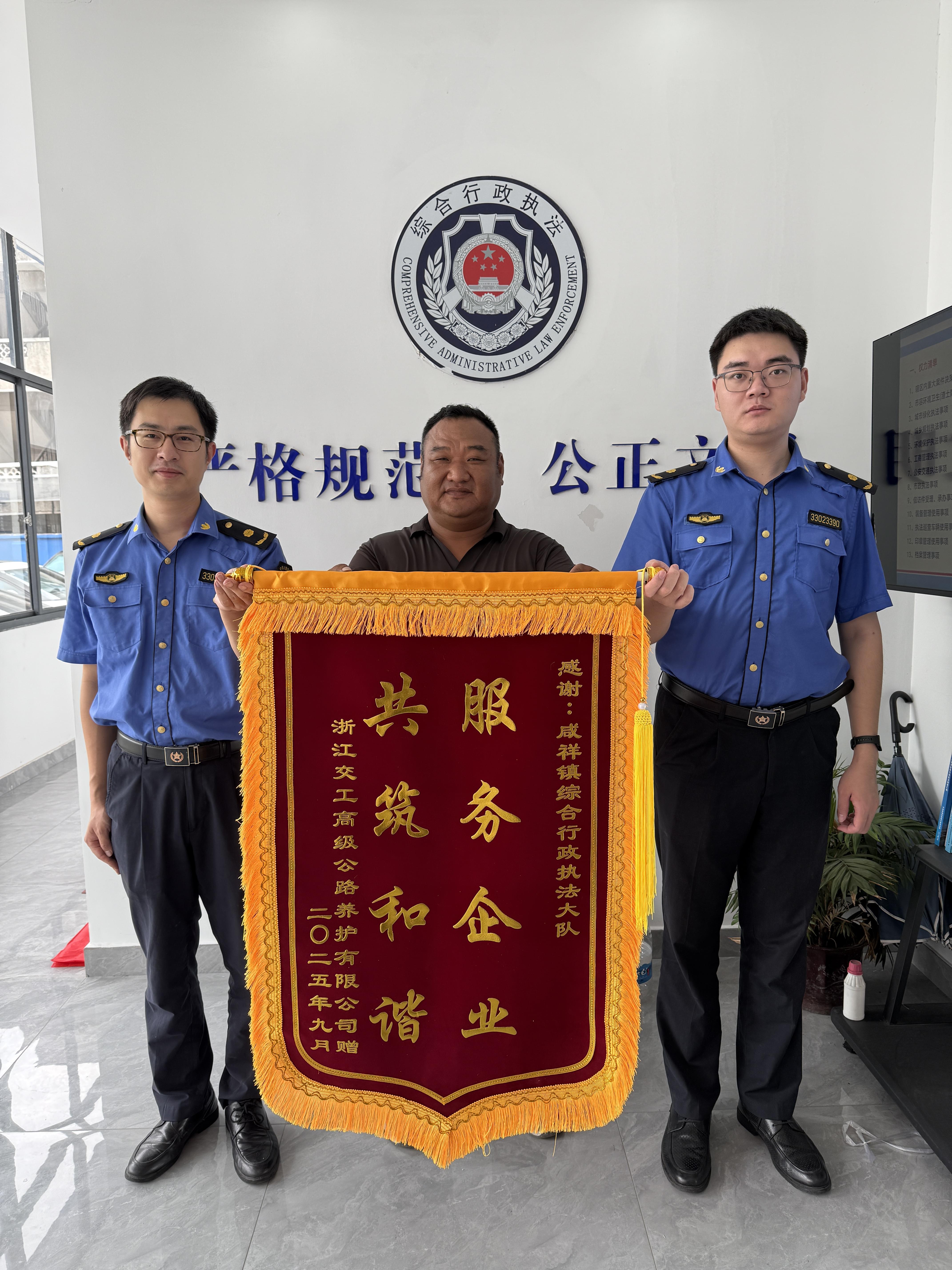 施工方給咸祥鎮(zhèn)綜合行政執(zhí)法隊送錦旗