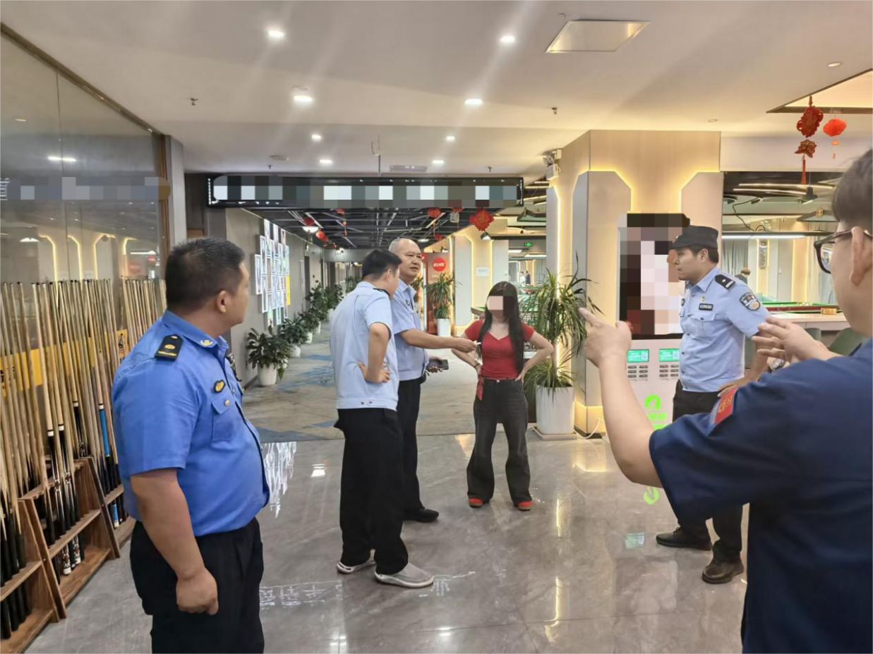 近日,浙江省寧波市奉化區(qū)岳林街道綜合行政執(zhí)法隊牽頭,由綜合執(zhí)法、市場監(jiān)管、人社、文旅、公安等多部門組成專項檢查組,對金鐘廣場、岳林廣場、萬達(dá)廣場周邊臺球廳,開展以消防安全、食品安全、噪聲污染及違規(guī)使用童工為重點(diǎn)的突擊檢查,以部門協(xié)同的“組合拳”規(guī)范經(jīng)營秩序,切實筑牢轄區(qū)安全防線。
