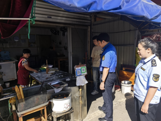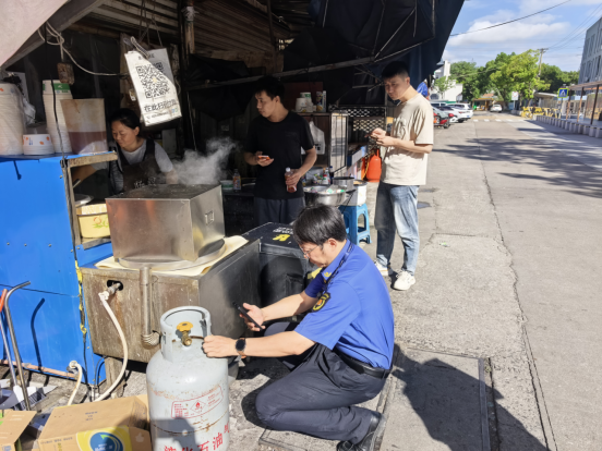 在整治過程中執(zhí)法人員對商鋪的燃氣瓶的安全使用進行詳細檢查,包括訂氣溯源,瓶口閥門,氣密安全等。執(zhí)法人員提醒商戶規(guī)范擺放物品,告知商鋪經(jīng)營線內(nèi)只能放置經(jīng)營物品,其他雜物不允許擺放。同時,對商家燃氣、灶具的安全使用,餐飲環(huán)境衛(wèi)生、食品安全等進行了全方位的細致檢查。為學(xué)生營造一個健康、安全的飲食環(huán)境。